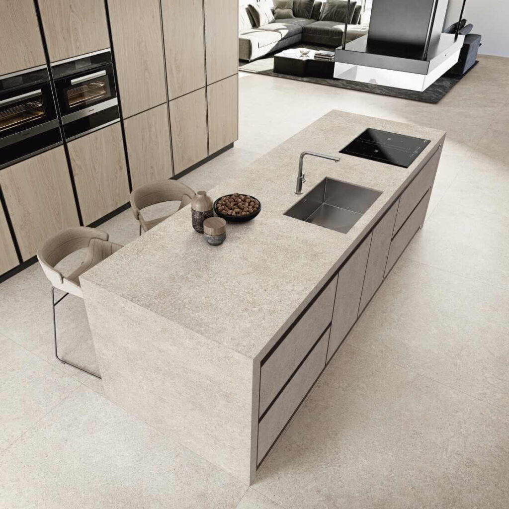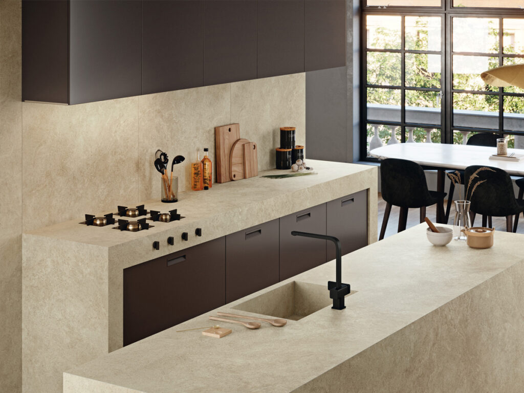 Cuando se trata de la construcción de cocinas integrales, la cohesión estética es uno de los principales puntos a tener en cuenta. Y para conseguirla, son necesarios materiales y elementos específicos que, además de resultar de utilidad en el uso diario, aporten valor a nivel visual. Es en este punto donde entran en juego el diseño, la calidad y ventajas de Coverlam y Coverlam Top, ya que nos permiten unificar los espacios con la misma gráfica y estética, aplicándose en las distintas superficies de la cocina, destinando Coverlam Top para encimeras, y Coverlam para suelos, paredes y revestimiento de mobiliario.