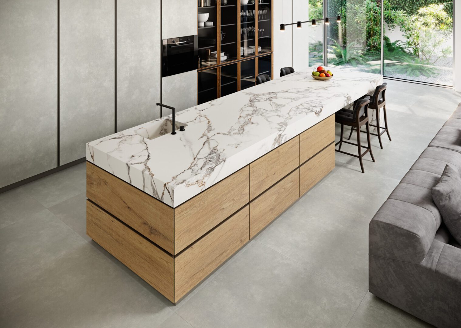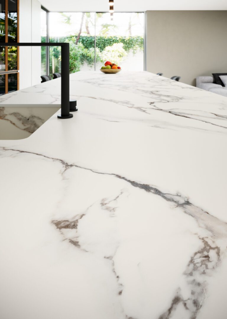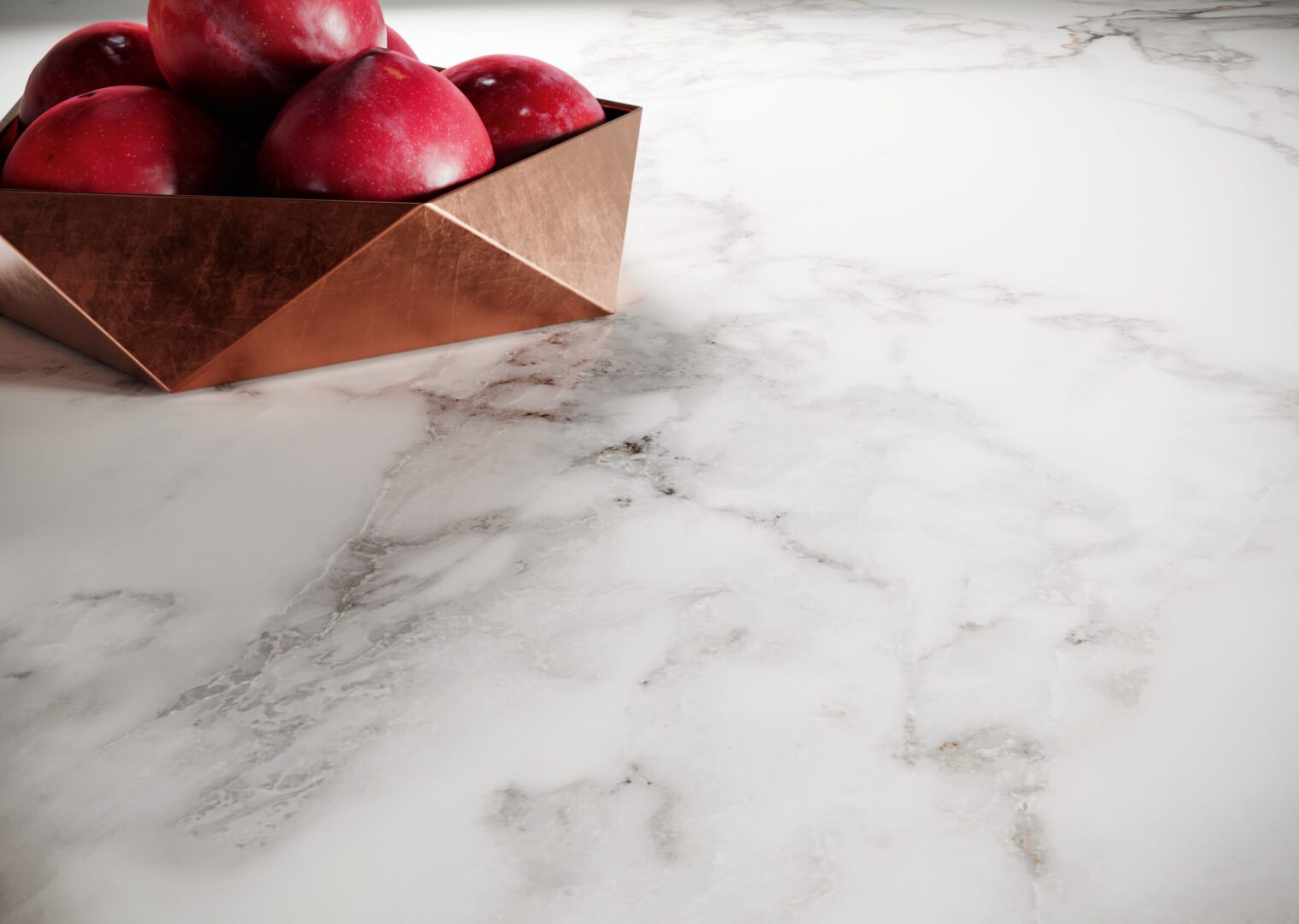 Calacata Vaglie, de color blanco y vetas ovaladas que van entre los tonos azulados a los marrones rojizos, es perfecto para espacios de lujo que requieran de una alta resistencia extra