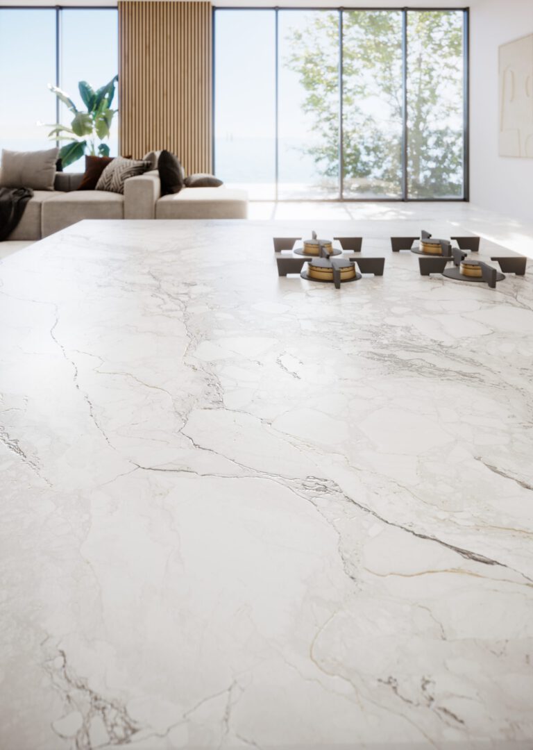 Camouflage se caracteriza por su tonalidad blanca con vetas grises, negras y algunos pequeños toques dorados
