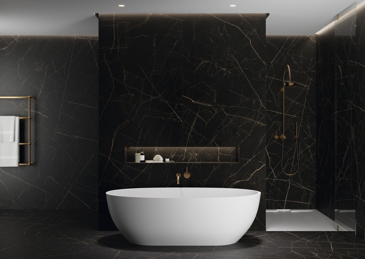 El Nero Ardí es un mármol compacto y de grano fino que se caracteriza por ser una caliza negra con algunas vetas de calcita en color ocre dorado. La belleza y opulencia de su fondo negro absoluto se potencian cuando trabajamos con superficies pulidas.